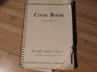 I like cooking and recipes and have some thoughts that an interesting study would be that of cooking trends over time. My tastes change...and looking at older cookbooks is so interesting. Recently I acquired the First Lutheran Ladies Aid Cookbook from Fargo, ND. My mother-in-law had it in her things even though I never saw her use a cookbook. There is a chapter of Norwegian recipes! For real. And the hotdish page tries to tantalize with names like...hot dish...rice hot dish....noodle luncheon hotdish...lima bean hot dish......DeLux hot dish...hot dish supreme. and the gelatin pages! Cherry gelatin whip. Orange gelatin whip. And on. And on.